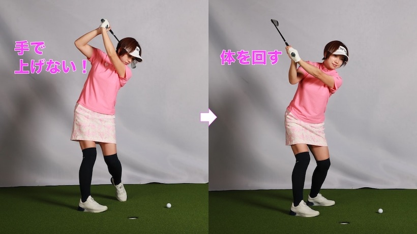 バックスイングを小さくしてハンドファーストでインパクト