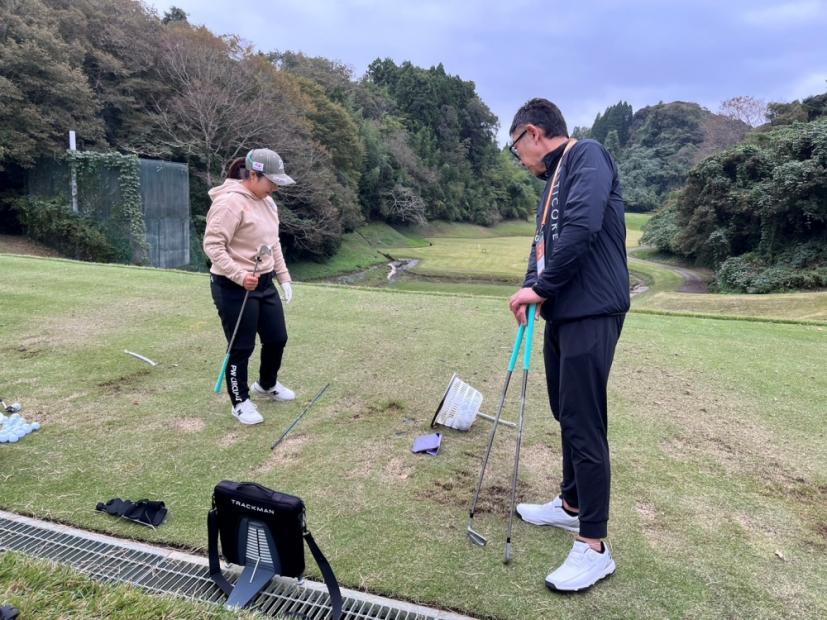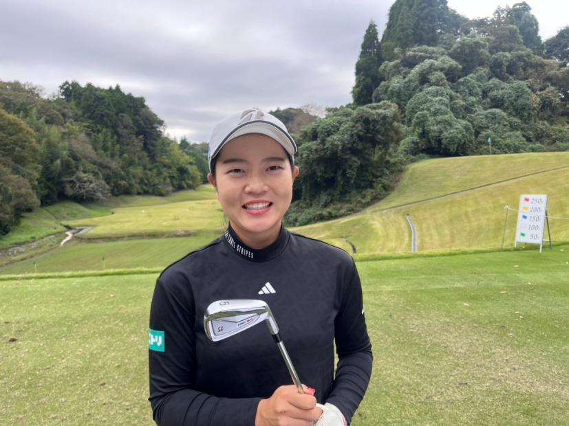 先日、初優勝を果たした佐藤心結も5番アイアンをテスト。