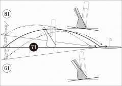 どちらもトラブルショットには違いませんから無理はしないこと。距離を欲張ってフルスングするとバランスを崩して大ダフリやチョロ、シャンクなどのミスが出てしまいます。通常のフルスイングを10とすれば、7割くらいの振り幅で打ちましょう。コンパクトに振れば曲がり幅も小さく抑えられて、ミスを軽減できます。プロたちは傾斜地でもフルスイングとほとんど変わらない振り幅で打ちますが、下半身のバランスを保てるだけのショット能力があるからで、一般のアマチュアがマネしてはいけませんよ。