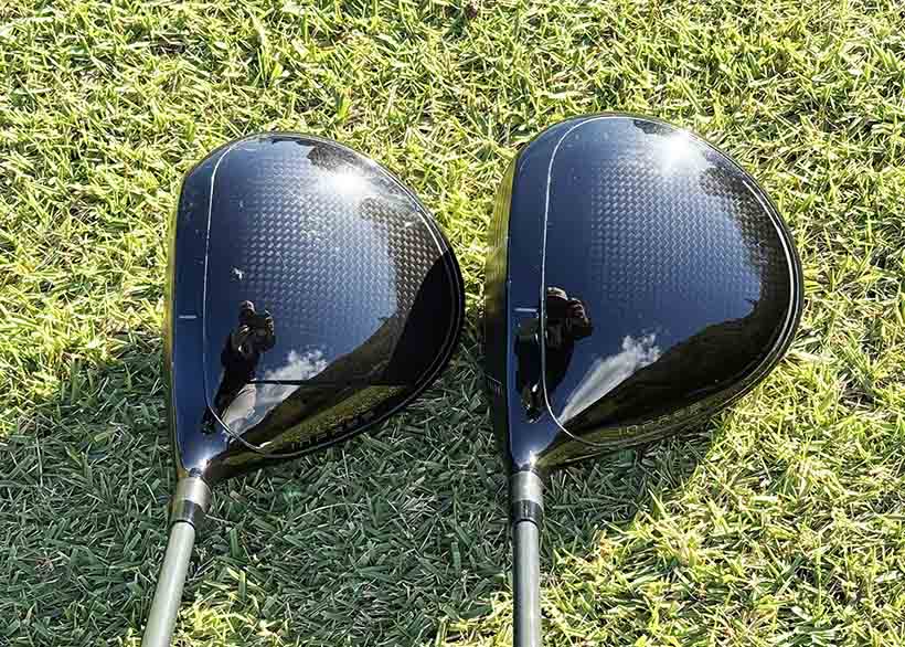今回は両方のヘッドをコースで打ってみました。ロフトはどちらも10.5度で、シャフトは両方とも純正の「SPEEDER NX」をベースとしたオリジナルシャフトでしたが、タイプ別に少ししなり方が違うものが装着されているようです。