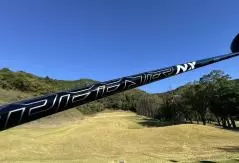 弾道は中高弾道という感じですが、まあまあ球は上がります。つかまりは結構いいです。シャフトは真ん中あたりがやんわりとしなる感じで、シャフトでも少しつかまえてくれるし、ヘッドも少しつかまえてくれるという感じがしました。ただ簡単にドローが出るほどのつかまりではなく、適度なつかまりという感じですね。スピンは少し少なめだと思いますが、めちゃくちゃロースピンということはなさそう。前に飛ぶ強い球が出ていたので、飛距離性能は高いですね。ミスヒットにも結構強く、打点がずれても同じような弾き感があって、曲がりも少ないし飛距離の落ち込みも少ないです。