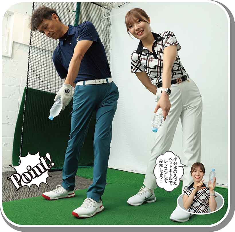 左手でペットボトルを握りインパクトのカタチを確かめてみましょう!