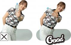 (写真右)クラブの角度と同様ボトルがナナメになっているか確認!