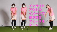 林から確実に出す場合にボールを右寄りに置くのはありですが、ヘッドを上から入れるとWさんのようになるので、インサイドアウト軌道で打ちましょう。こうすることでヘッドが上から入りづらくなります。さらにフェースをターンさせるとフェースが開くのを防げます。