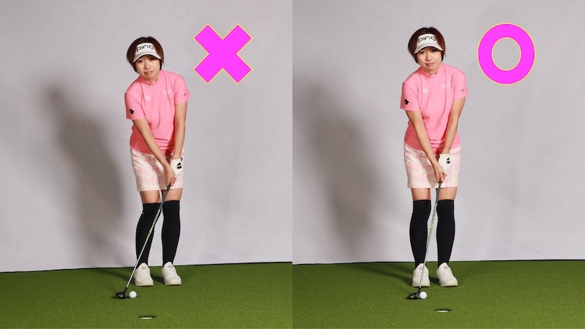 ボールを右に置いて上から打つとダフりやチャックリになる