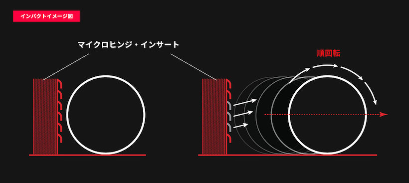 マイクロヒンジのヒンジはボールに順回転をもたらす“蝶番形ギミック”