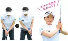 右手のフィーリングを生かせ、かつ安定感もあるグリップです。手首を固定することで背中の大きな筋肉を使えるのがその理由。背中を使いたい時に合掌することもあります。また、両手がひとかたまりになるので、ストロークが本当の意味での振り子になりやすい。振り子のイメージで左右均等の振り幅で打ちたい人にはいいグリップです。小指側の3本指をしっかり握るのがポイントです。