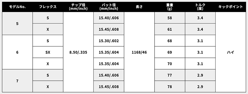 スペックは一番柔らかくて軽いのが「5S」ということで、やはりある程度ヘッドスピードのあるゴルファー向けのシャフトという感じがします。そして一番ハードなスペックが「7X」となるのですが、一体どのくらいのヘッドスピードがある人なら打てるのでしょうか(笑)。
