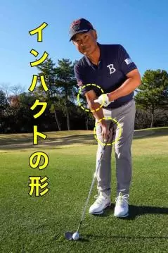アドレス時にインパクトの形を作り、その時の右腕をキープしたまま始動してインパクトまでいけば、クラブの上下動や、手首を使ってボールをすくう動きがなくなってダフりやトップを防げます。