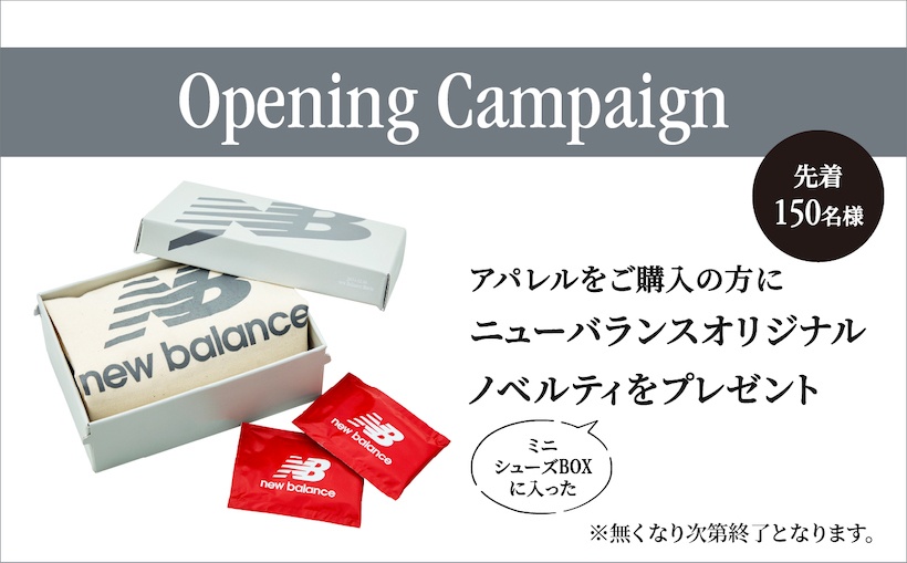 店内アパレル1点以上ご購入の先着150名に、990v6シューズのピンズやGreyのニューバランスロゴをあしらったトートバッグなどのオリジナルノベルティを、Greyのミニシューズボックスに入れてプレゼント。