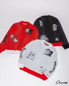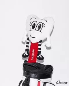 シンプルで大胆なモノクロアートで知られるChocomoo氏と手を組み、ユニークなゴルフウェアコレクションが誕生。「Chocomoo」のオリジナルデザインが全面にあしらったアイテムは、まるでアートを身に纏っているような新たな感覚を楽しめる。特に、愛らしい人形型のヘッドカバーは、思わず抱きしめたくなるようなデザインで気分をさらに盛り上げてくれる。