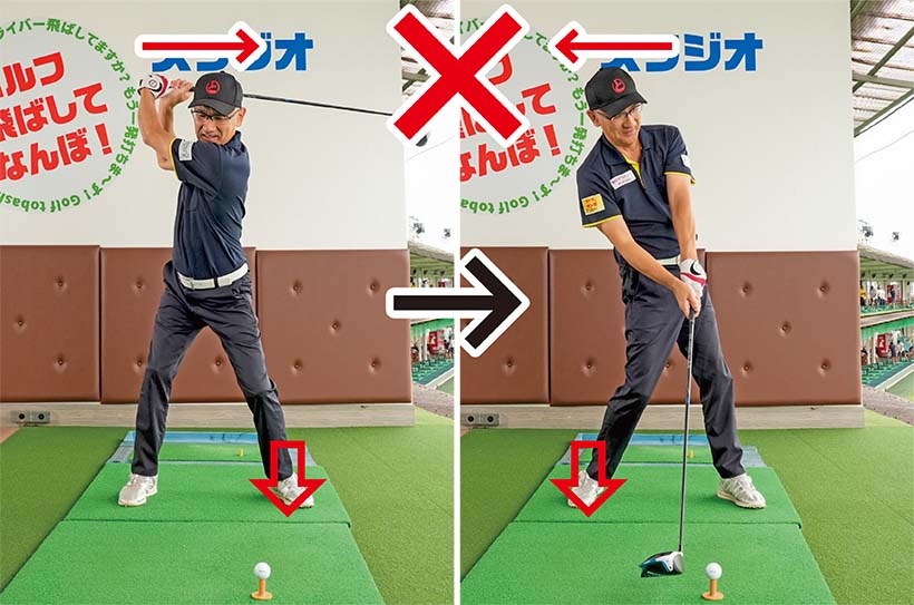 飛ばしのスイング軸は基本的にカラダの後ろ側にあることを忘れないでください。