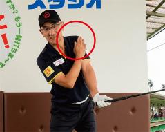 カラダの回転が不足して腕振りだけを頑張ったところで、フォロースルーで左ヒジが引けてしまいやすく、フィニッシュまでしっかりと振り抜けません。
