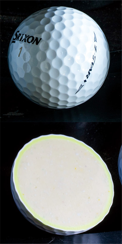 「一般的に1層コアの利点はインパクトでのエネルギーロスがなくなり、ボールスピードを上げられることです。2層にすると、2つのコアで硬さの違いを出すことによってアイアンでのスピン量を上げることができます。それぞれにメリットがあるのですが、『スリクソン Z-STARシリーズ』の1層コアは、1層の中でも外側に行くほど硬くなっていて、内側に行くと急激に軟らかくしています。1層なのに2層の役割を備えています。その結果として、ドライバーではボールスピードを上げつつ、アイアンでもスピンが入るボールになっています」