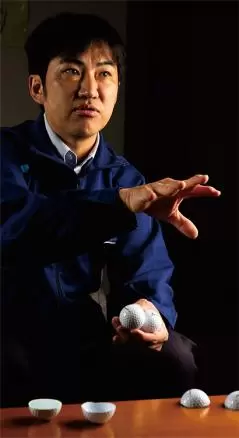 「松山選手とは1年に3、4回ボールのテストを行ないます。新しいボールにはすごく興味があり、テストに対してはすごく前向き。ただし、新モデルだからと言って必ず使う選手ではありません。絶対に今までより良いモデルでなければ使いません。逆に使いはじめたということは間違いなく今までより良くなったという証です。その積み重ねによって、最新のボールは史上最高のスリクソンになったと思います」