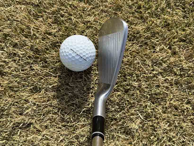 打ってみると、確かに打感がとてもいいです。柔らかめのツアーボールを打ったのですが、モチッとした打感で、フェースに乗るような感覚があり本当に気持ちがいい。打音も低めでいい音です。キャビティアイアンの打感とは違い、これはマッスルバックのアイアンを打っている感覚に近いですね。