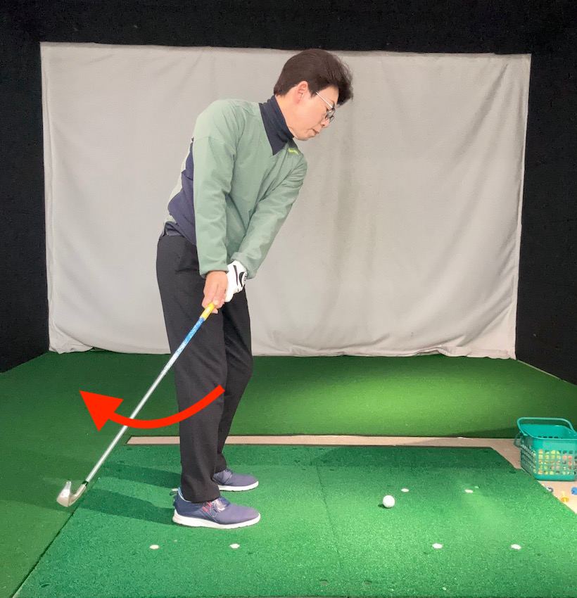 テークバックしたときに、ヘッドを過剰なほどインサイドへ引いてしまう人も多いもの。こうなると、フェースが大きく開いてしまい、インパクトでスクエアに戻すことが非常に難しくなります。戻せないと、フェースが開いたインパクトになってボールがつかまらず、右へのミスが増えてしまいます。インサイド過ぎる人はテークバックで左腕を親指方向へ回したり(回内)、右腕を小指方向へ回したり(回外)する動作が強い傾向があります。アドレスしたときの左手の甲の向きを変えない意識でテークバックすると、インサイド過ぎるテークバックの改善につながります。