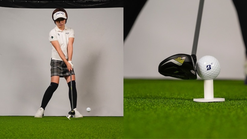 練習法としてはティアップしたボールを打つのが一番。ボールだけをクリーンに打つ練習をすると、ヘッドが上から入りすぎずレベルに動くようになりロフト通りの球が打てます。