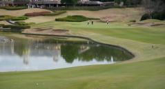 また、これもローカルルールになりますが、進行を早めるために、白杭を横切った地点を基点に、その基点よりもホールに近づかないフェアウェイの地点から2クラブレングスの範囲でドロップして打てるという救済処置もあります。この場合は2打罰になります。ティーショットを白杭内に入れてしまった場合は、4打目になります。