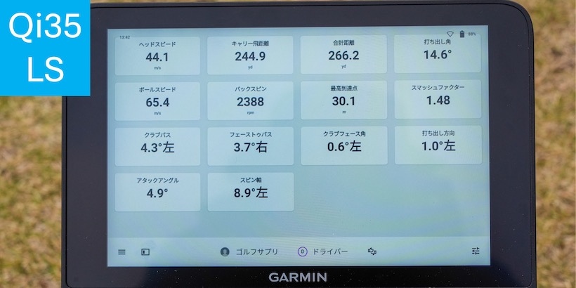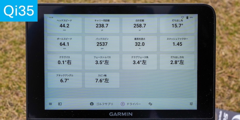 では、さっそく高橋良明プロによる試打データとともに「Qi35」の飛びを紹介していこう。まずは、前作「Qi10」からどのように進化したのか。それぞれ10球ずつ打ってもらい、比較に適した計測データをピックアップした。弾道計測器はGARMIN(ガーミン)の「Approach R50」を使用。ボールはテーラーメイドのツアーボール「TP5」。「Qi10」は高橋プロの私物だ。