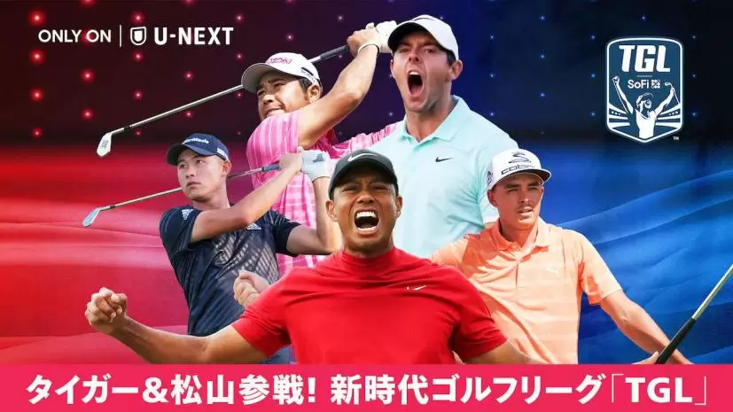 U-NEXTでは、日本時間1月8日に行われるニューヨーク・ゴルフクラブ vs ザ・ベイ・ゴルフクラブの開幕戦を皮切りに、TGLの全試合を見放題でライブ配信。また、PGAツアー、DP Worldツアーなど、世界のトップゴルフツアーも配信中。