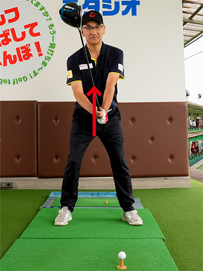 バックスイングはあくまでもカラダの回転が主導であり、手先だけでクラブを上げてはいけません。コッキングばかりに意識がいって捻転不足にならないように、肩を90度近く回すことを第一に考えましょう。コッキングはトップへと導くためのサブ的な動作なのです。