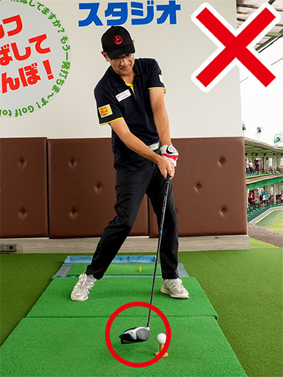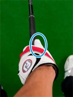 飛ばしのグリップは左手甲をやや上に向けて、右手のヒラを左手甲の向きと揃えるように握るのが基本ですが、そうすると自分から見て左手の親指をグリップの真上よりも少し右側に添えることになりますよね。