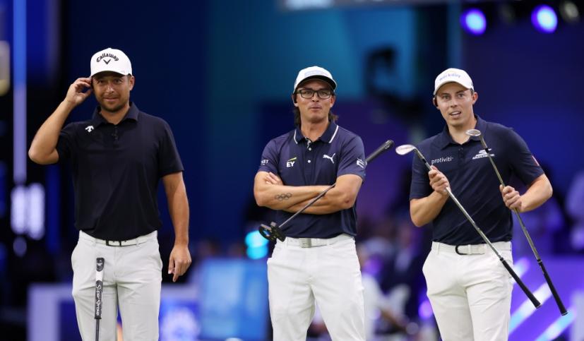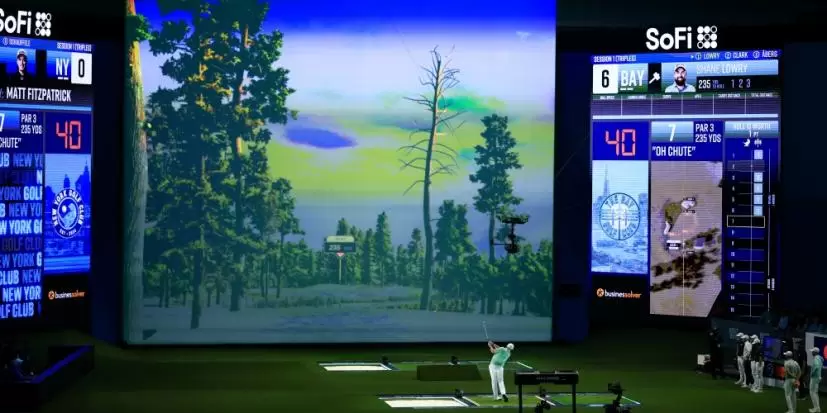 フロリダ州パームビーチガーデンズに新設された専用の室内競技場「SoFiセンター」で行われたTGLは、テクノロジーを駆使してデザインされた仮想コースをプレーしました。