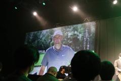かっこいい音楽、映像と共に、Taylormade President & CEOであるDavid Abeles氏やテーラーメイド ゴルフ 代表取締役社長・比留間育洋氏が登壇し、挨拶。テーラーメイド製品や契約プロの関する様々な思いや感謝を述べ、新製品発表会は始まった。