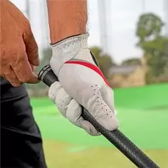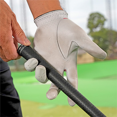 ゴルフクラブも同様で、手から落とさないくらいの力感で持つのが基本であって、そのためにも左手の小指側で絡めるように持ち、右手もグリップに軽く添える感じで握りましょう。