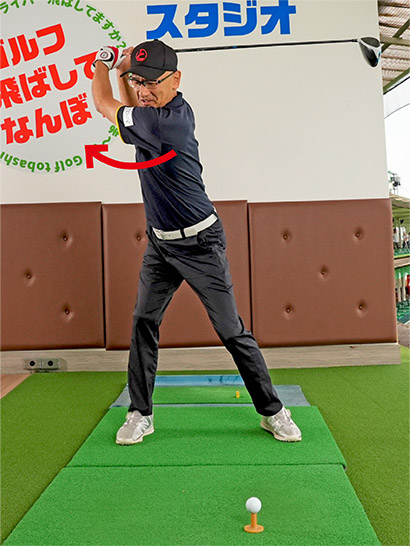 グリップの握り圧も適切にキープでき、両肩にも余分な力が入らず、バックスイングの捻転が深くなります。結果として飛ばしのパワーが存分に蓄えられて、自分なりの最大の飛距離が得られます。