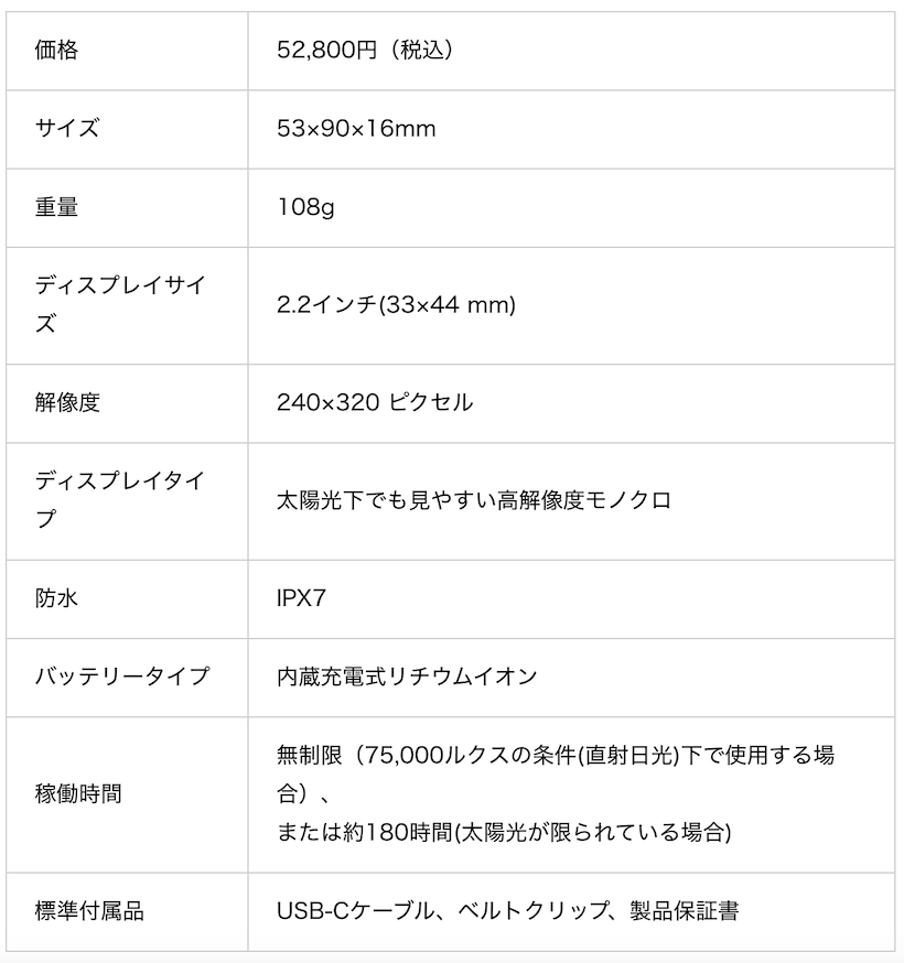 ※良好な晴天条件下(7万5000ルクス)で使用した場合。