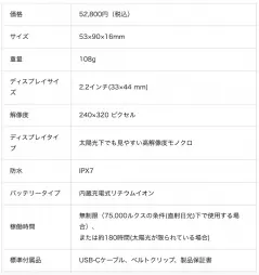 太陽光の下でも見やすい2.2インチのハイコントラストのモノクロディスプレイを搭載し、残りの飛距離や風速などプレーに重要なデータを瞬時に確認することができる。さらに、大きな文字表示ができ、グリーンまでの残り距離を読みやすくすることも可能。