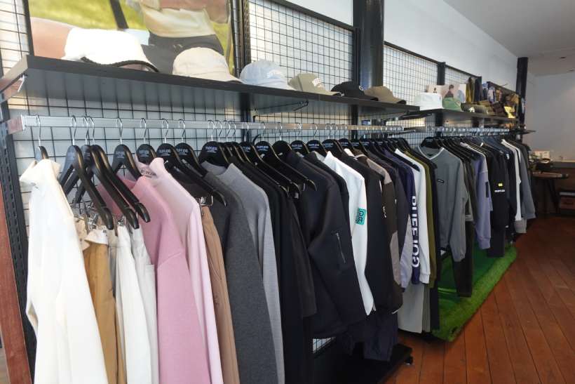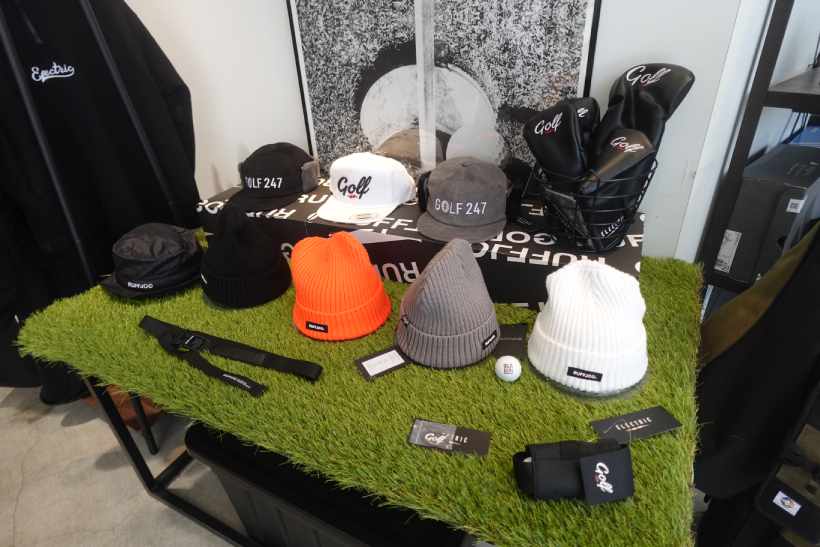 とにかく、ここに来たらゴルフの身の回りのアイテムがほとんど揃う!と言えるほど、ウェアやキャップだけでなく、小物のアイテムも充実している。オンラインでは売り切れているアイテムも、店舗には置いてあることもあり、店舗限定アイテムも多く販売されていた。