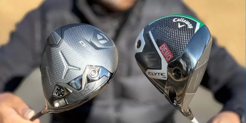 2つのヘッド形状を比べてみるとけっこう違いがあります。「Qi35 LS」はかなりネック側がシェイプされた洋梨形状で、いかにも左には行かないような形。「 ELYTE ♦♦♦」は洋梨っぽい形状ではありながら、ネック側のシェイプはそれほどではありません。左に行きそうな感じはしませんが、個人的にはこちらの方が捕まりやすそうに感じます。