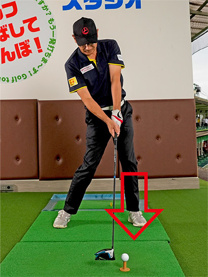 大事なポイントは左足を踏み込むときは、カカト側で地面に圧力をかけるようにすること。そうすれば腰がスムーズに回転しやすいですし、肩もフルターンしてフィニッシュまでしっかりと振り切れます。フィニッシュでは左ヒザが目標方向を指すくらいまで腰を回し切れば飛ばせるようになります。
