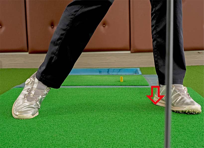 左ツマ先が少し浮いてもOK。そう思えばスムーズに振り抜きやすい!