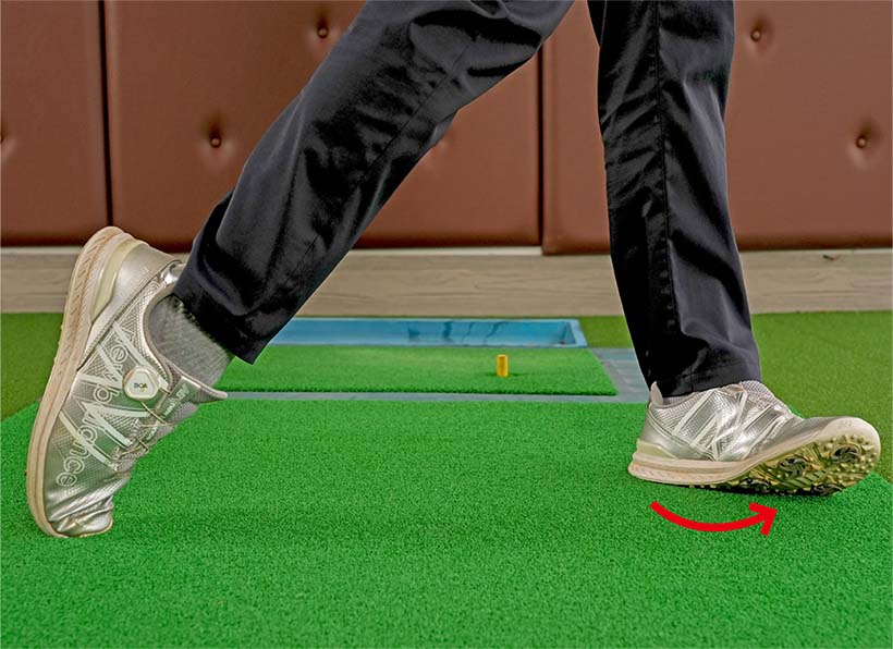 最近のプロたちのスイングを見るとインパクトで左足をしっかり踏ん張っていますが、左ツマ先を少し浮かせたり、インパクト後に左ツマ先を目標方向に向けたりしているプロが案外多いことに気づきませんか?
