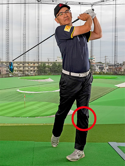 左足を止めて左ヒザをロックするとインパクトが詰まりやすい
