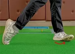 切り返しで体重を左カカトに乗せれば左ツマ先が少し浮くのが自然な動き