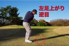 逆目にあるボールは、たとえ花道でもしっかり打たないと芝の抵抗に負けます。また、大なり小なり左足上がりの傾斜ですからヘッドが地面に刺さりやすくもあります。チャックリが起こりやすい要素が揃っているわけで、簡単そうに見えても、ある程度慣れていないと難しいのです。