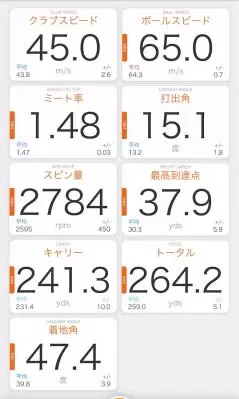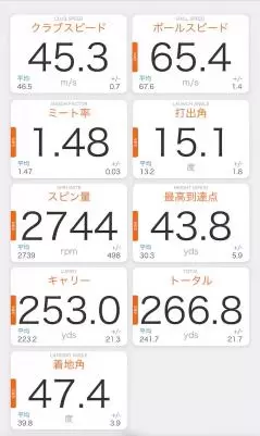 キャロウェイ「エリートX」の測定結果の一例