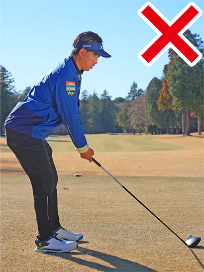 飛ばしてやるぞ! そう思うとゴルファー誰しも力がみなぎってきますよね。気持ちを奮い立たせることは大事だとボクも思います。でも力の入れどころを間違えてしまうと飛ばないアドレスになりやすいので注意してください。