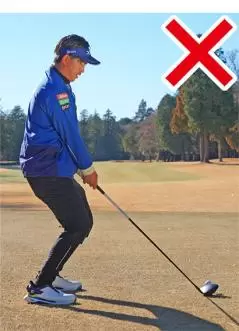 突っ立ったままの棒立ちの構えでは飛ばないということは、大半のゴルファーは理解しています。ところがどっしりと構えようとして下半身のバランスがとれていない人が案外多いのです。