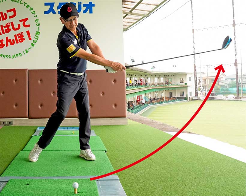 フォロースルーからスイングを開始するとスイングの円弧が大きくなる効果が高いですし、下半身のパワーを効率よく使って飛ばす感じがつかめるのが大きなメリットです。