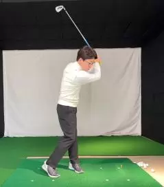 グリップを左へ引き込むフォロースルー