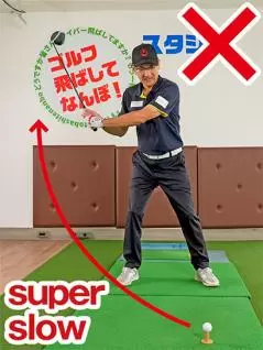 ところが私が見たところ、バックスイングがゆっくりすぎる方がとても多いように思います。バックスイングの軌道を間違えないように丁寧に上げようとしているのかもしれませんが、ゆっくりを意識すると手先の動きでクラブを動かしてしまいやすくなります。