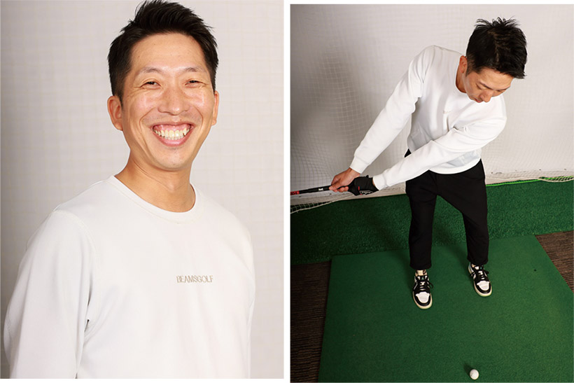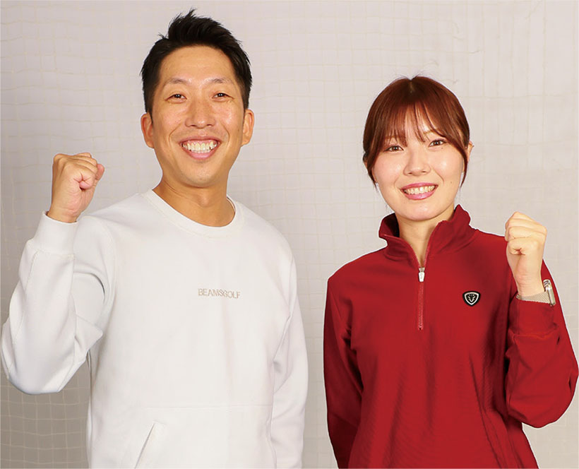 (写真左)インパクトのカタチを作ったら「L」で間隔を確かめてみましょう!