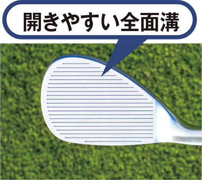 FULL-FACEはフェースを開いて使いやすい、フェース全面溝を採用。ヘッドサイズも他の3種より大きいハイトゥ形状。
