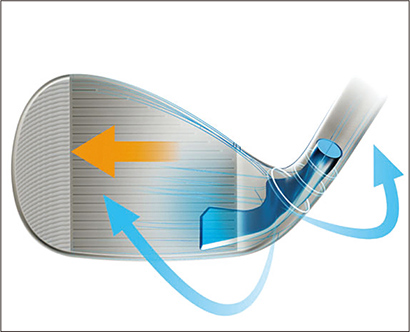ヘッドサイズや打感は変えずに慣性モーメントを高めることが可能となった。ウェッジであれば、距離とスピンの安定性を向上できる。その他にも構造や溝にまでこだわり抜いたウェッジに仕上がっている。